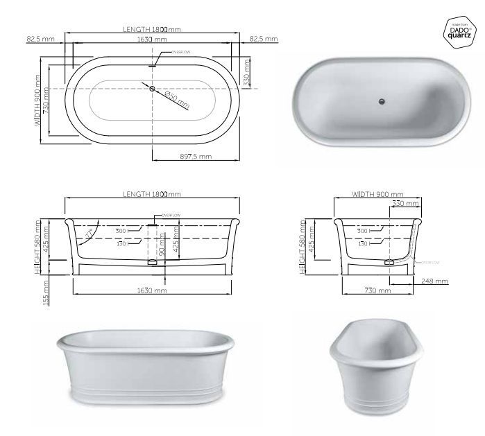 Avec ses dimensions L 1800 × l 900 × H 580 mm, Daisy offre un bain spacieux et enveloppant, parfait pour créer un véritable rituel de détente. Pour sublimer son style néo-rétro, elle s’accorde idéalement avec une robinetterie sur pied ou murale au caractère classique (laiton, bronze, nickel), et des finitions type porcelaine ou cristal.