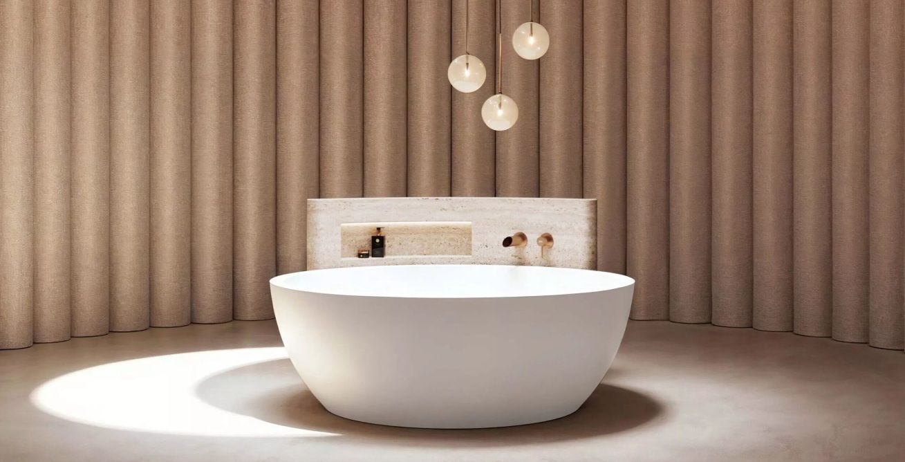 Baignoire îlot ronde XXL 160 cm – “effet bol” pour un bain à deux en DADOquartz® blanc mat