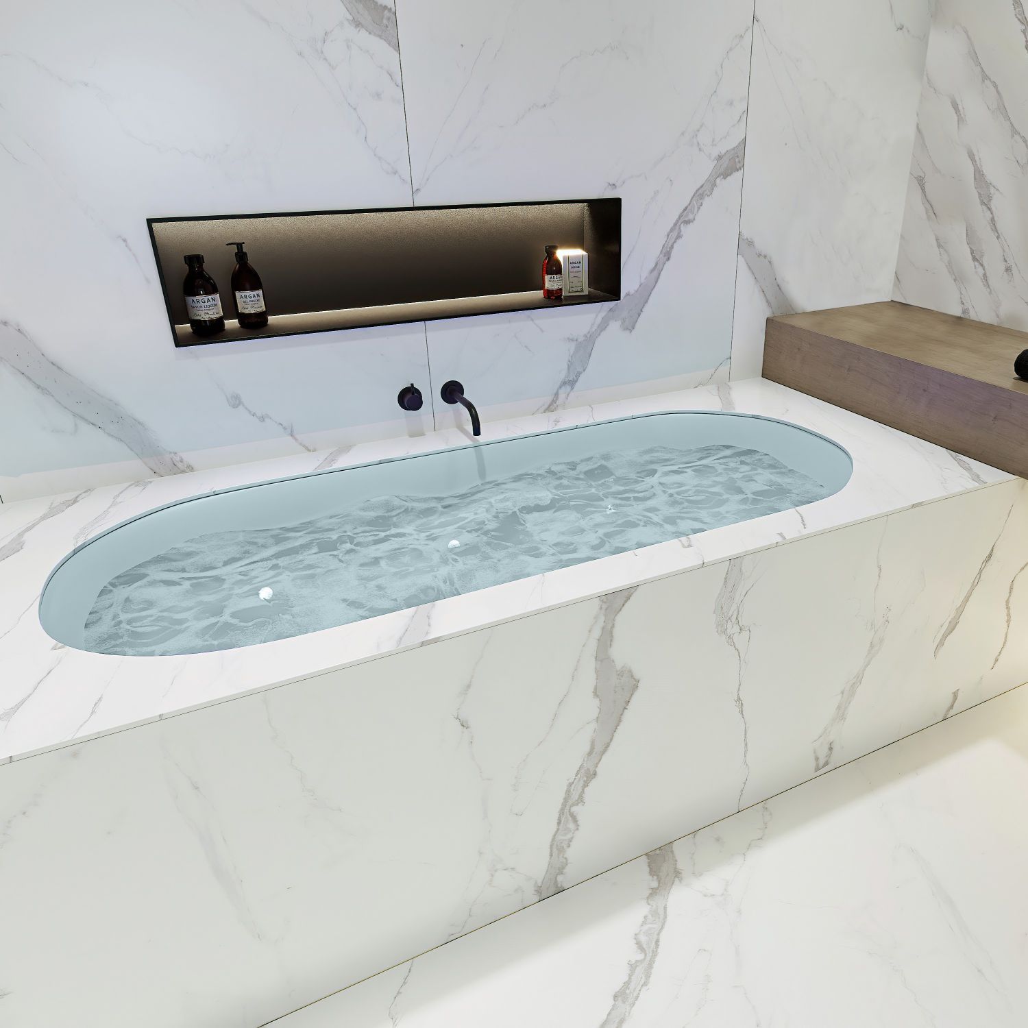 Baignoire ovale 180X180 avec des plages plates pour installation sous plan à encastrer